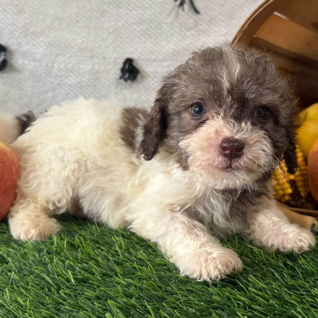 Hi, I’m Ginger! I’m an 8-week-old female Bernedoodle. My dad is a Poodle and my mom is a Bernedoodle. I have a beautiful blue merle & white coat, and I was born on August 6, which makes me a Leo sign. I’ll be ready to go home to my forever family after October 1, once I’m grown enough to leave my litter. I’m ready to make your house feel like a home with my cuddly love.